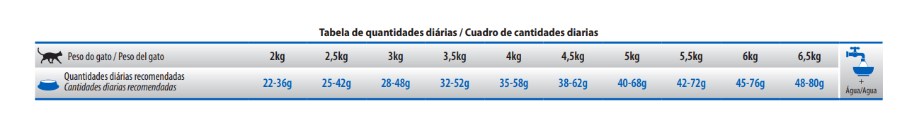 Humedad (máx.) 90 g / kg (9%); Proteína bruta (mínimo) 420 g / kg (42%); Extracto etérico (min.) 200 g / kg (20%); Materia fibrosa (máx.) 22 g / kg (2,2%); Materia mineral (máx.) 85 g / kg (8,5%); Calcio (mínimo) 8.000 mg / kg (0,8%); Calcio (máx.) 15 g / kg (1,5%); Fósforo (mínimo) 8.000 mg / kg (0,8%); Sodio (mínimo) 2.000 mg / kg; Potasio (mínimo) 5.000 mg / kg; Magnesio (min.) 900 mg / kg; Omega 6 (mínimo) 25 g / kg; Omega 3 (mínimo) 12 g / kg; DHA (mínimo) 3500 mg / kg; EPA (mínimo) 3.000 mg / kg; Betacaroteno (mínimo) 1,5 mg / kg; Luteína (min.) 5 mg / kg; Fructo-oligosacáridos (mínimo) 3500 mg / kg; Manano-oligosacáridos (mínimo) 300 mg / kg; DL-metionina (min.) 4.000 mg / kg; Taurina (min.) 2.000 mg / kg; Sulfato de condroitina (mínimo) 900 mg / kg; Sulfato de glucosamina (min.) 1.200 mg / kg.