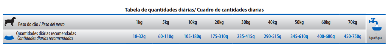 Humedad (máx.) 9%; Proteína Bruta (mín.) 23%; Extracto Etéreo (mín.) 12%; Materia Fibrosa (máx.) 2,8%; Materia Mineral (máx.) 7,9%; Calcio (mín.) 0,8%; Calcio (máx.) 1,4%; Fósforo (mín.) 0,6%; Sodio (mín.) 2.000mg/kg; Potasio (mín.) 5.000mg/kg; Magnesio (mín.) 800mg/kg; Omega 6 (mín.) 15g/kg; Omega 3 (mín.) 5.000mg/kg; DHA (mín.) 2.500mg/kg; EPA (mín.) 2.000mg/kg; Fructo-Oligosacáridos (mín.) 700mg/kg; Manano-Oligosacáridos (mín.) 240mg/kg; Metionina (mín.) 5.000mg/kg; Taurina (mín.) 1.000mg/kg; L-Carnitina (mín.) 200mg/kg; Lisina (mín.) 11g/kg; Sulfato de Condroitina (mín.) 300mg/kg; Sulfato de Glucosamina (mín.) 500mg/kg.
